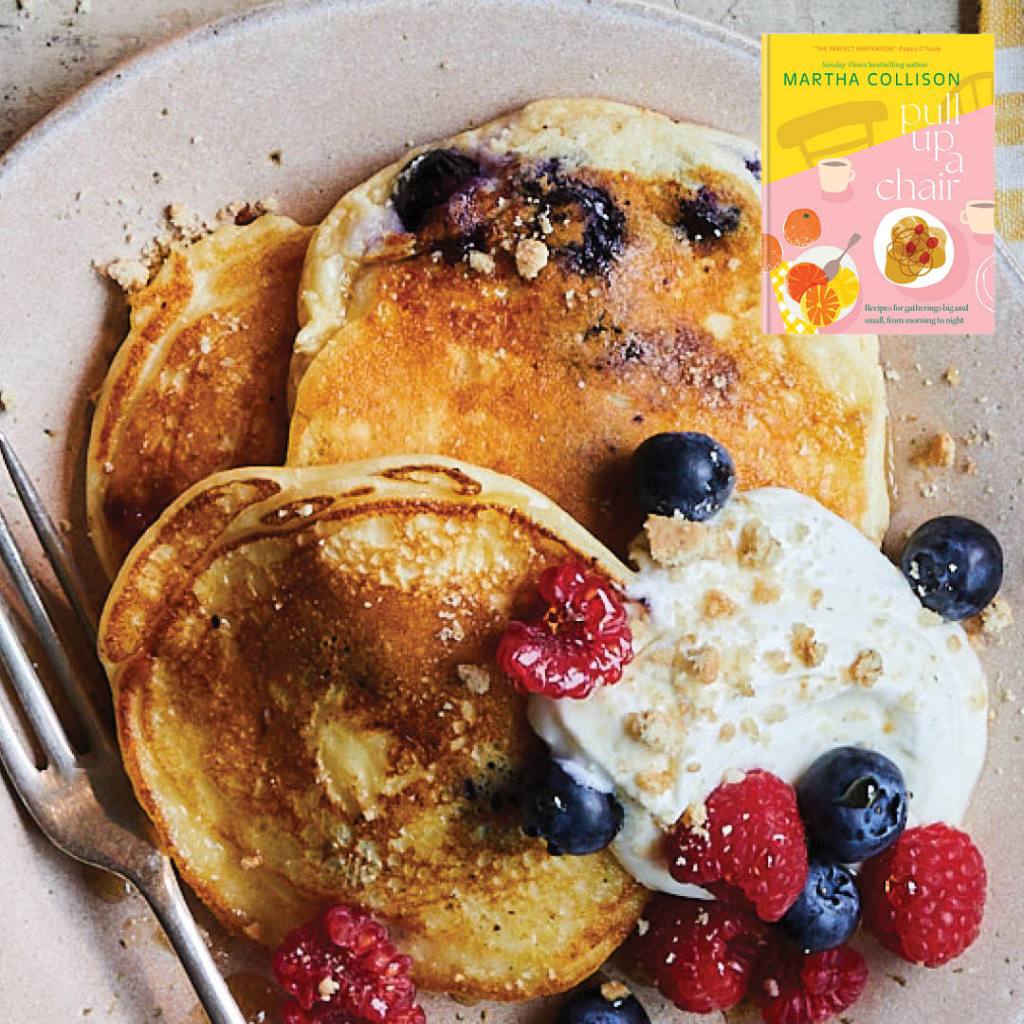 “I tend to find blueberries a little lacklustre compared with some of their punchier berry relatives – but cooking them really concentrates their flavour and transforms them into something vibrant. These ricotta pancakes are light yet rich, with a flavour reminiscent of blueberry cheesecake, especially when topped with crumbled biscuits!” Martha Collison, author of Pull Up a Chair